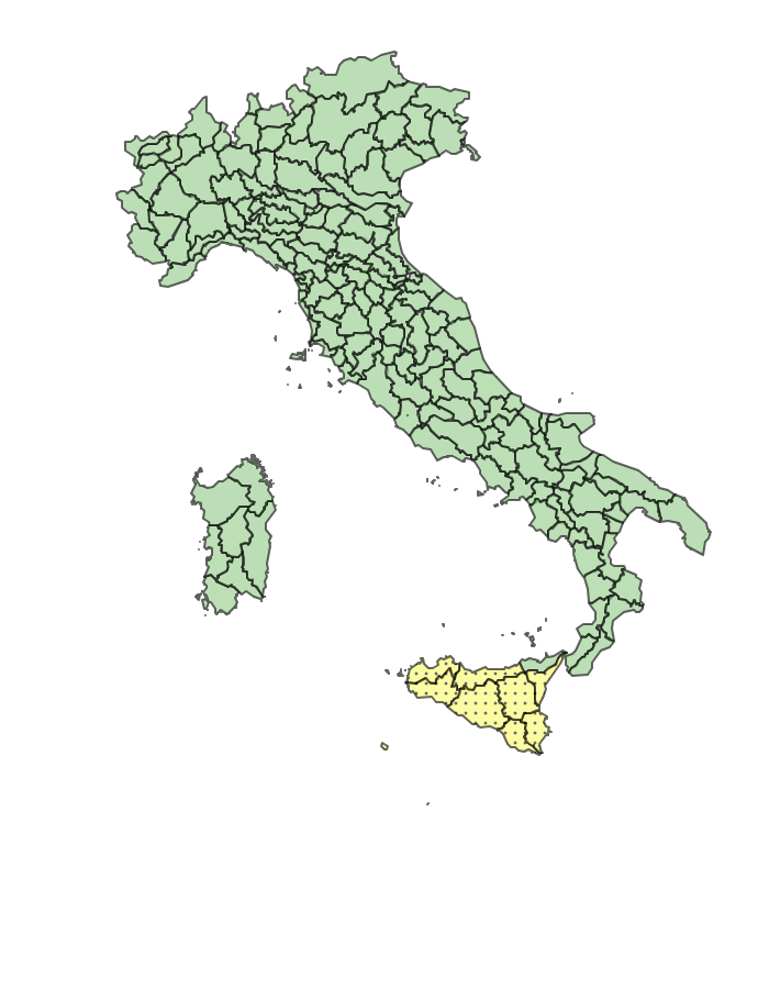 Sicilia: Centro-Meridionale e isole Pelagie, Sud-Orientale, versante ionico, Bacino del Fiume Simeto, Nord-Orientale, versan...