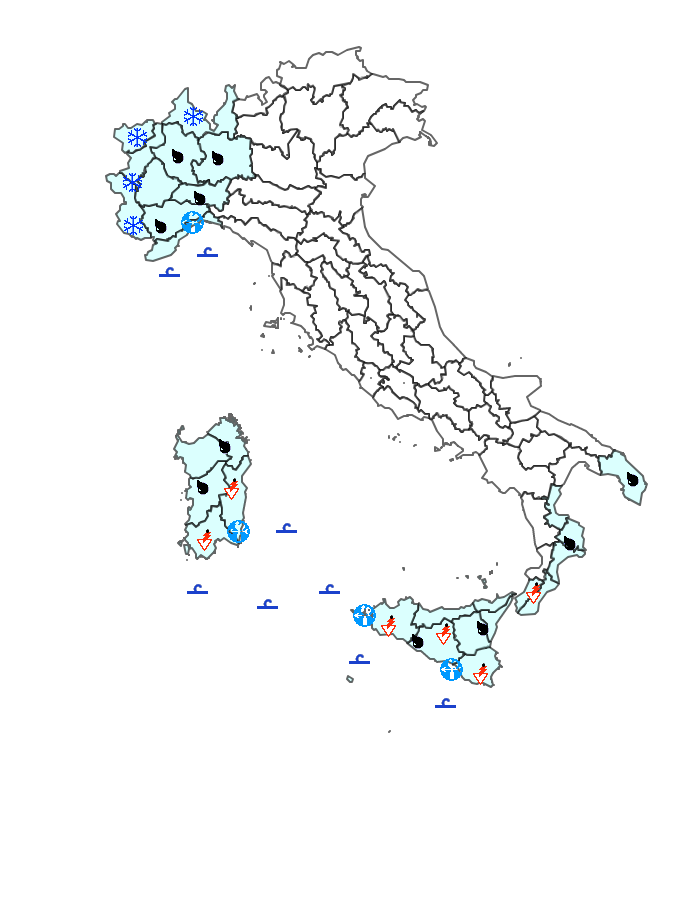 - sparse, anche a carattere di rovescio o temporale sulla Sicilia, con quantitativi cumulati da deboli a puntualmente moderati;