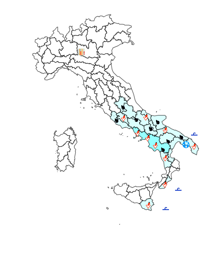 - sparse, anche a carattere di rovescio o temporale, sui settori costieri della Campania, con quantitativi cumulati moderati;